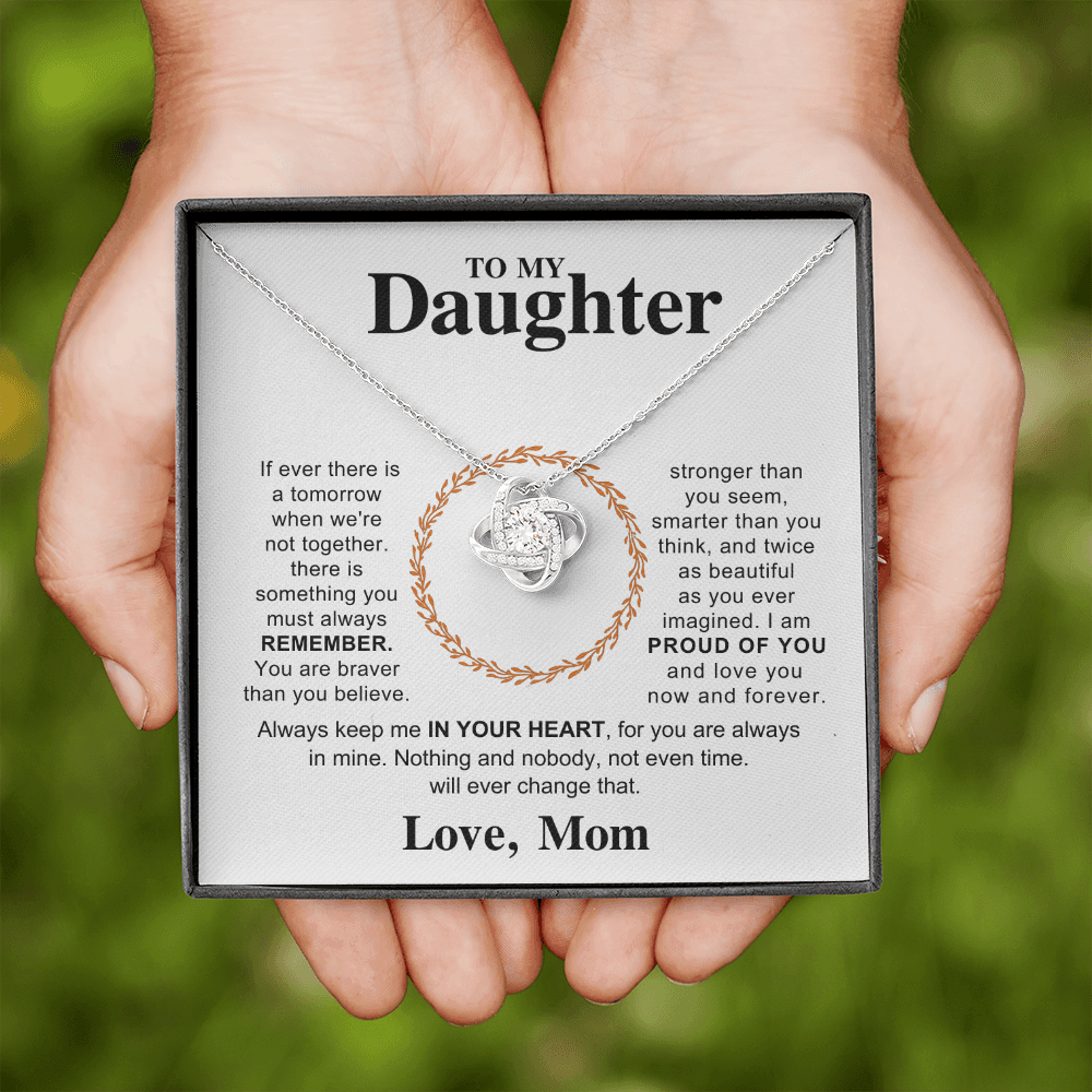 The Always In Your Heart Love Knot Necklace Gift is more than a beautiful piece of jewelry—it’s a symbol of the unbreakable bond between a mother and daughter. A gentle reminder that even when you’re apart, she is never alone and never unloved.